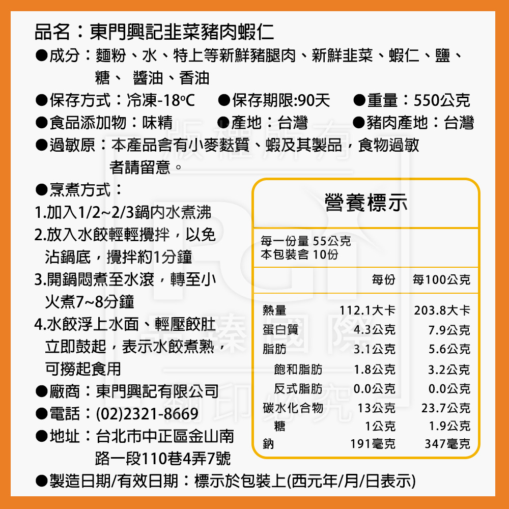 【品臻】東門興記手工水餃-韭菜豬肉蝦仁
