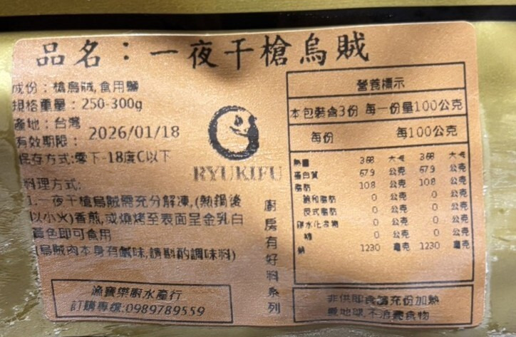 內容物成分:槍烏賊、食用鹽